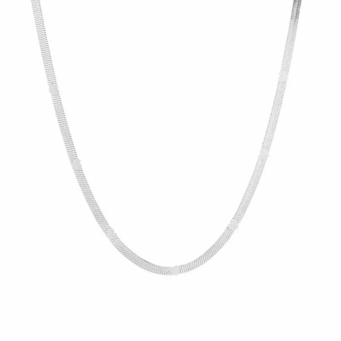 Hearts on flat snake necklace silver