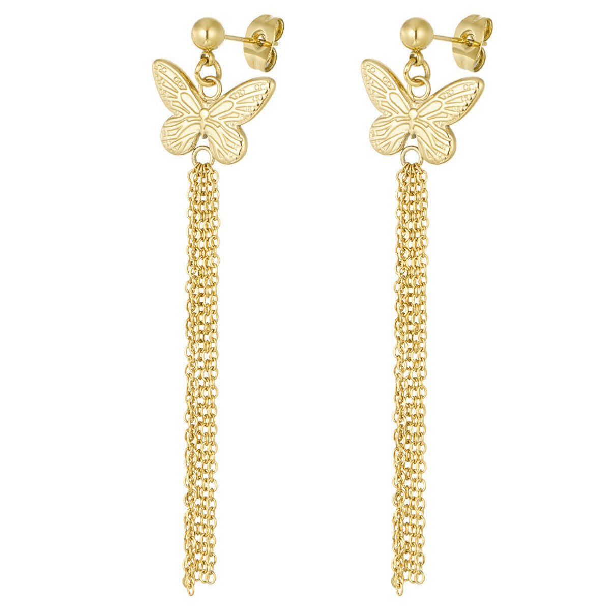 Butterfly with chains earrings gold