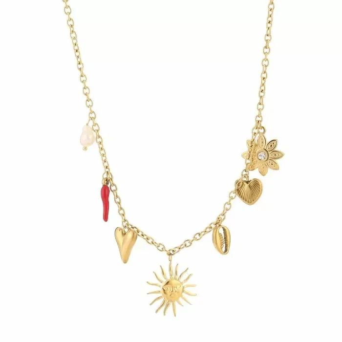 Holiday charms statement necklace gold