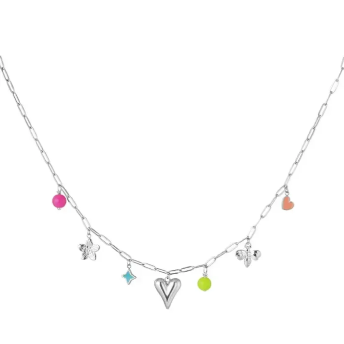 Colorful charm necklace silver